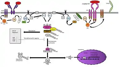 - López-Bojorquez, Lucia Nikolaia (2004-02). «La regulación del factor de transcripción NF-κB. Un mediador molecular en el proceso inflamatorio». Revista de investigación clínica 56 (1): 83-92. ISSN 0034-8376. Consultado el 8 de noviembre de 2021.