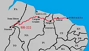 La BR-222 es una carretera transversal federal brasileña, que actualmente se extiende desde Fortaleza, capital de Ceará, hasta la ciudad de Marabá, en Pará, interconectando, además de Ceará y Pará, los estados de Piauí y Maranhão. Su longitud actual es de 1819,8 km.[1]