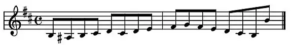 8. Contiene un tema relativamente sencillo que evoluciona por saltos de una sola nota hacia arriba y hacia abajo en la escala de si menor.