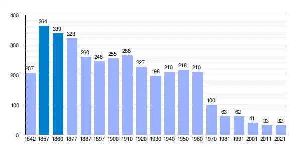 | Gráfica de evolución demográfica de Bañuelos de Bureba[3] entre 1842 y 2021 |