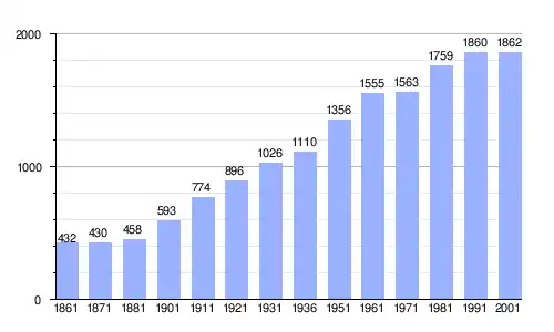 | Gráfica de evolución demográfica de Badesi entre 1861 y 2001 |