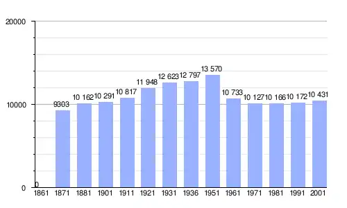 | Gráfica de evolución demográfica de Badia Polesine entre 1861 y 2001 |
