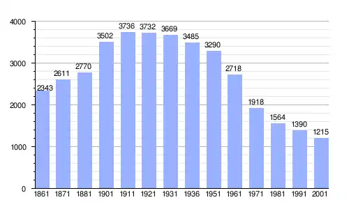 | Gráfica de evolución demográfica de Badia Tedalda entre 1861 y 2001 |