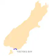 La bahía Toetoes es la más oriental de las tres grandes bahías que se encuentran en el estrecho Foveaux, en la costa de Southland, Nueva Zelanda. Las otras dos son la bahía Te Waewae y Oreti Beach. Con treinta kilómetros de largo, la bahía es el punto más meridional de la planicie Awarua, un área de suelos turbosos que se adentra hacia el centro de la isla unos 15 kilómetros. El punto más oriental de la bahía se encuentra cerca de Slope Point, el punto más meridional de la Isla Sur, justo donde comienza The Catlins.