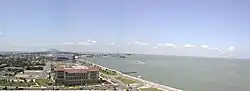 ![]() Vista área con la bahía de Corpus Christi (dcha.), bahía Nueces (arriba) y bahía Oso (abajo) | ||