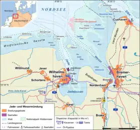 Mapa de la región mostrando la bahía (Jadebusen)