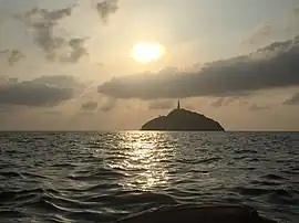 ![]() Atardecer en la bahía, con la isla El Morro | ||