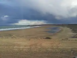 La costa cercana a la bahía del Fondo se caracteriza por presentar acantilados en sus extremos norte y sur, donde afloran sedimentos del Patagoniano, los que afloran también en los intermareales donde se desarrollan plataformas de abrasión con amplios bancos de moluscos.[1]