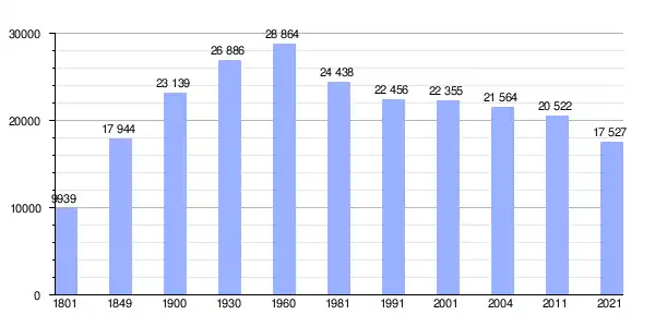 | Gráfica de evolución demográfica de Baião entre 1801 y 2021 |