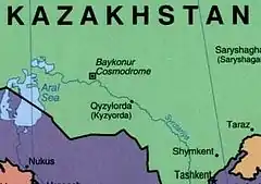 ![]() Baikonur Localización de Baikonur en Kazajistán | ||||