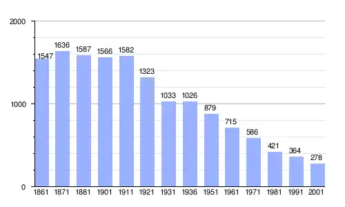 | Gráfica de evolución demográfica de Bajardo entre 1861 y 2001 |