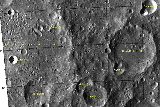 Puntos de referencia del cráter Balandin. Mapa ALC-103.