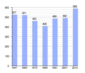 | Gráfica de evolución demográfica de Balde[1] entre 1947 y 2010 |