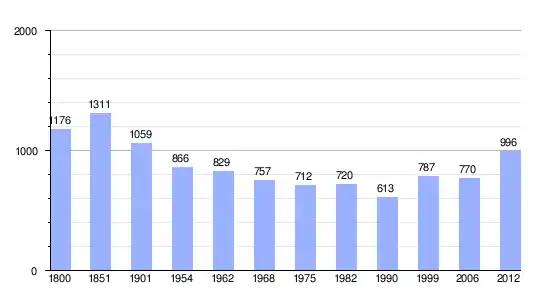 | Gráfica de evolución demográfica de Balleroy entre 1800 y 2012 |