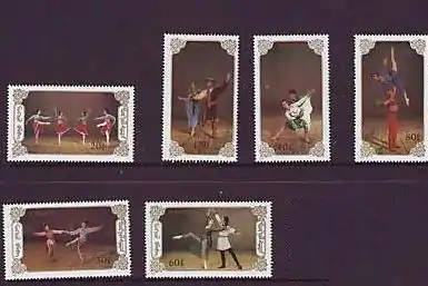 Ballet en los sellos postales, considerando que el ballet se acompaña de música clásica, esta temática en filatelia se suele confundir con la de los "músicos". Muy usado por Emiratos Árabes y otros países incluyendo Cuba, Mongolia y Nicaragua en emisiones comerciales.