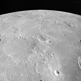 Balmer aparece aproximadamente en centro de la imagen procedente de la misión Clementine