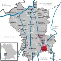 Está ubicado al oeste del estado, en la región de Suabia, a poca distancia de la frontera con el estado de Baden-Wurtemberg y al sur del río Danubio.