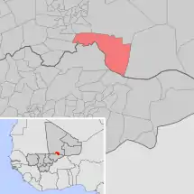 Se encuentra ubicada en el centro-este del país y al sur de la región de Tombuctú, en la zona de la sabana inundada del delta interior del Níger-Bani, cerca de la frontera con Burkina Faso.