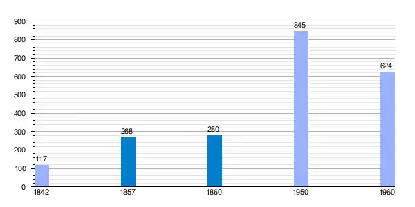 Población de derecho según los censos de población del INE. Población de hecho según los censos de población del INE.Entre el Censo de 1857 y el anterior, crece el término del municipio porque incorpora a 225022 (Asieso) y 225123 (Guasillo). |