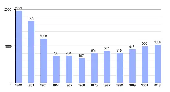 | Gráfica de evolución demográfica de Banassac-Canilhac entre 1800 y 2013 |