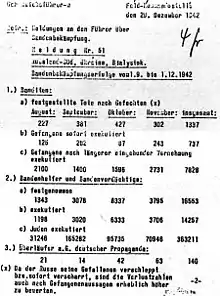 También en octubre de 1942, solo un par de meses antes de las masacres de Gottberg, el Reichsmarschall Hermann Göring había ordenado una "guerra contra los bandidos" en el Zona de retaguardia del Grupo de Ejércitos Centro, que fue seguida poco después por una Directiva del OKH el 11 de noviembre de 1942 para la "guerra contra los bandidos" en Frente Oriental que anunciaba consideraciones sentimentales como "irresponsables" e instruía a los hombres a disparar o, de preferencia, colgar a los bandidos, incluidas las mujeres.[29] Los recelos de los comandantes dentro del Grupo de Ejércitos de la retaguardia de que tales operaciones eran contraproducentes y de mal gusto, ya que mujeres y niños también estaban siendo asesinados, fueron ignorados o resistidos por Bach-Zelewski, quien frecuentemente "citó los poderes especiales del Reichsführer".[30] A finales de noviembre de 1942, cuarenta y un "bandidos judíos polacos" fueron asesinados en la zona forestal de Lubionia, lo que incluyó "represalias" contra las aldeas de la zona.[31] Otra acción emprendida bajo los auspicios de operaciones anti-bandidos ocurrió cerca de Lublin a principios de noviembre de 1943; Aktion Erntefest (Action Harvest Festival), unidades SS de la Policía y las Waffen-SS, acompañadas por miembros de la policía de Lublin, detuvieron y mataron a 42.000 judíos.[32]