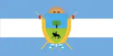 | Diseño | Bandera idéntica a la nacional con dos franjas horizontales azul celeste y al medio una blanca en cuyo centro ostenta el escudo provincial. | |