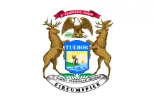 | Diseño | Escudo de armas de Míchigan sobre un campo azul. | |