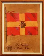 Bandera del Tercer Batallón Español de Puerto Rico | 1898 | Bandera de guerra del Tercer Batallón de Puerto Rico ondeada en la isla de la actual de Puerto Rico, pero más comúnmente en Cuba por soldados españoles-puertorriqueños durante la Guerra de Independencia cubana contra España entre 1895 y 1898. Puerto Rico y Cuba se convirtieron en posesiones de los Estados Unidos como resultado de la Guerra hispano-estadounidense de 1898, poniendo así fin a más de 400 años de dominio español en ambas islas. |