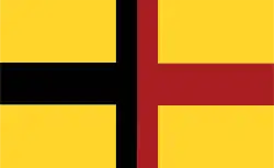 La bandera del estado malayo de Sarawak está basada en la bandera del Reino de Sarawak del Rajá blanco, e incluye el amarillo de la realeza del Sudeste Asiático — la sección amarilla y la diagonal negra son similares a las que aparecen en la bandera de Brunéi, aunque el amarillo de Brunéi es de un tono más brillante.