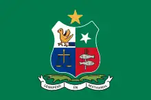 Bandera verde que muestra el escudo de Stellaland