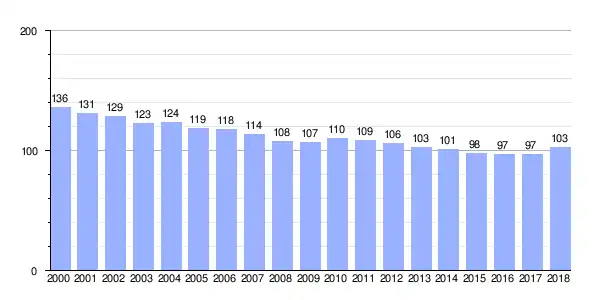 | Gráfica de evolución demográfica de Baos[4] entre 2000 y 2018 |