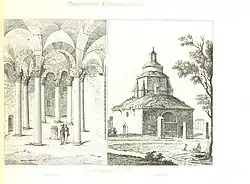 Un huecograbado de Baltard representó el baptisterio antes de la restauración de 1818.[9] Muestra un tambor octogonal elevado con dos cornisas y soportado por contrafuertes. Por encima, y por detrás, hay una pequeña linterna cilíndrica coronada por una cornisa y cubierto de un tejado a dos aguas.