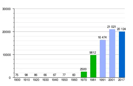 Población de derecho según los censos de población del INE. Población de hecho según los censos de población del INE.Entre el Censo de 1991 y el anterior, aparece este municipio porque se segrega del municipio 31076 (Cizur).[12] |
