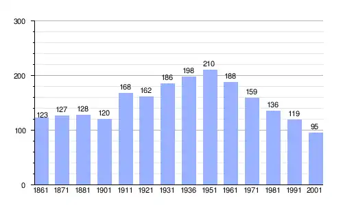| Gráfica de evolución demográfica de Baradili entre 1861 y 2001 |