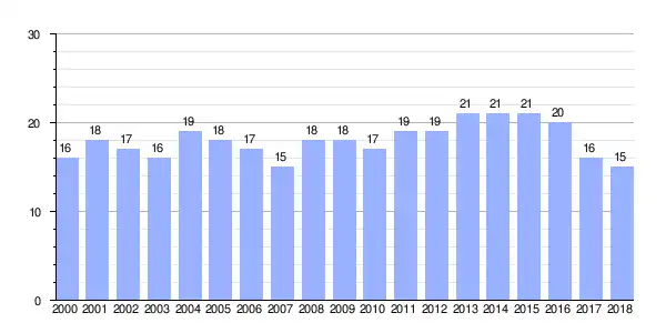 | Gráfica de evolución demográfica de Barallobre entre 2000 y 2018 |