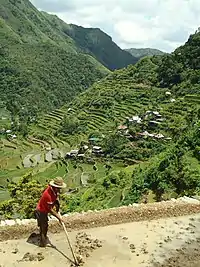 Este orden social estuvo dividido a tres clases. Los miembros del tumao clase (cuál incluye el datu) era la nobleza de descenso real puro, comparado por el Códice de Boxeador a los señores españoles titulados (señores de título).[1][23] Bajo el tumao era la clase de guerrero del vasallo sabida como el timawa, caracterizado por el Jesuit sacerdote Francisco Ignatio Alcina como "el tercer rango de nobleza" y por el conquistador Miguel de Loarca como "hombres libres, ni jefes ni esclavos". Estos eran personas de nobleza más baja quién estuvo requerido a render servicio militar al datu en caza, guerras de tierra (Mangubat o Managayau), o redadas de mar (Mangahat o Magahat).[24] Aparte de este, el timawa también pagó impuestos y tributo (buwis o handug) y era a veces llamado a para trabajo agrícola al datu, aunque los vasallos personales del datu puede ser eximir de tales obligaciones (el último estuvo caracterizado por el Códice de Boxeador como "caballeros y hidalgos).[1] Bajo el timawa era el oripun clase (commoners y esclavos), quién rendered servicios al tumao y timawa para deudas o favores.[1][25]