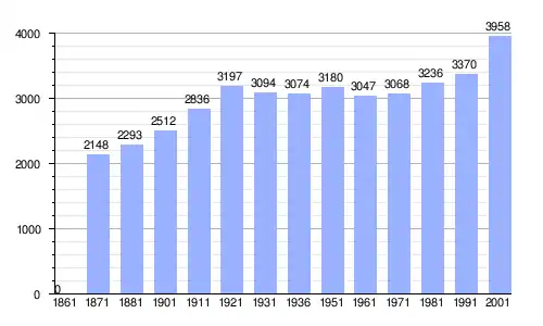 | Gráfica de evolución demográfica de Barbarano Vicentino entre 1861 y 2001 |