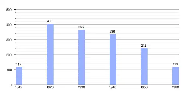 | Gráfica de evolución demográfica de Barbenuta[6] entre 1842 y 1960 |