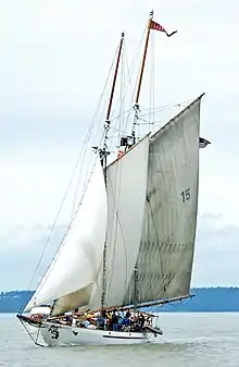 El capitán Slocum cortó un dory por la mitad e hizo dos barquitas tapando la popa con dos espejos de popa de madera. Como barca auxiliar de su yate (Spray) llevaba una de estas barquitas, un medio dory, fácil de izar y amarrar. Según aquel navegante, su esquife servía de bañera y lavadero para lavar la ropa.[34]