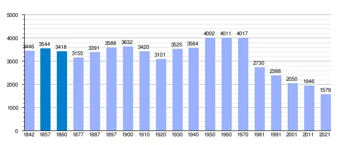 | Gráfica de evolución demográfica de Valderas[28] entre 1842 y 2021 |
