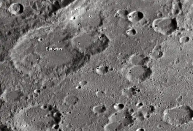 Por convención estas características son identificadas en mapas lunares poniendo la letra en el lado del cráter punto medio que está más cerca de Barocius.