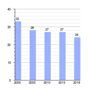 | Gráfica de evolución demográfica de Atrio[2] entre 2000 y 2018 |