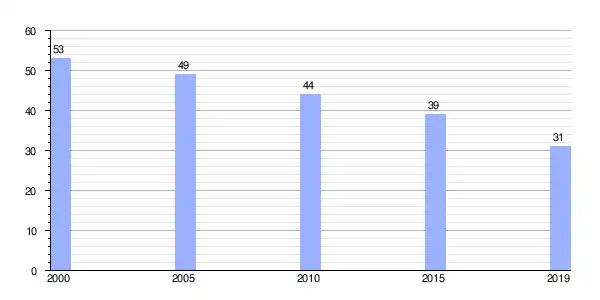 | Gráfica de evolución demográfica de San Cosme de Barreiros (aldea) entre 2000 y 2019 |