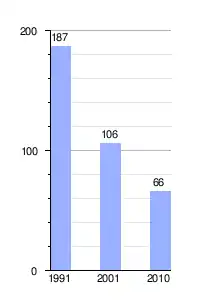 Gráfica de evolución demográfica de Barrio Canale entre 1991 y 2010