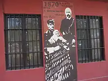 Muro exterior de la Casa de la Cultura, con una imagen de Benjamín Vicuña Mackenna y su esposa Victoria, hija de Ramón Subercaseaux Vicuña.