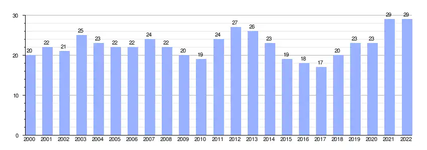| Gráfica de evolución demográfica de Barriosuso (Burgos) entre 2000 y 2022 |
