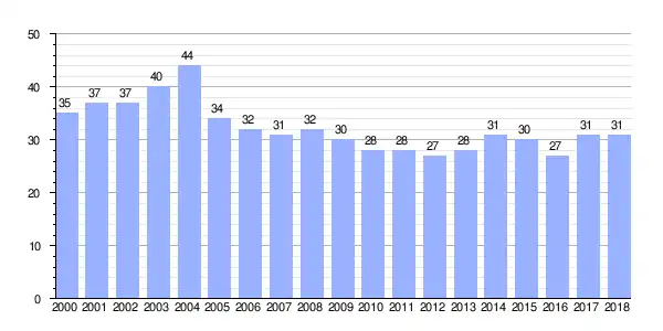 | Gráfica de evolución demográfica de Barros entre 2000 y 2018 |