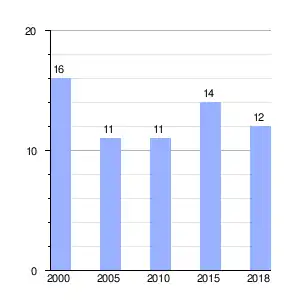 | Gráfica de evolución demográfica de Barrosas[2] entre 2000 y 2018 |