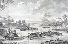 A su regreso pudo comprar algunos caballos que describió como "bestias espantosas y medio muertas de hambre" antes de partir de nuevo el 6 de junio. El 5 de julio navegó por el río Lena hasta Lensk y luego Kírensk ; en ese momento, ambas ciudades consistían en poco más que unas pocas cabañas de madera. Como era mediados de verano, el agua ya no estaba helada, pero nubes de mosquitos pululaban cerca de la orilla. Los botes se rompieron en los rápidos, pero De Lesseps pudo continuar a caballo hasta Irkutsk, cerca del extremo suroeste del lago Baikal .