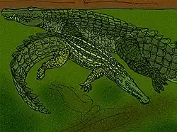 ![]() Harpacochampsa (en frente) y Baru darrowi (atrás). | ||